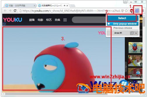 8、当我们想要用小窗播放视频或玩游戏时,只需要点击一下右上角的这个按钮,选择【select】,再选中视频或游戏界面区域就可以了。