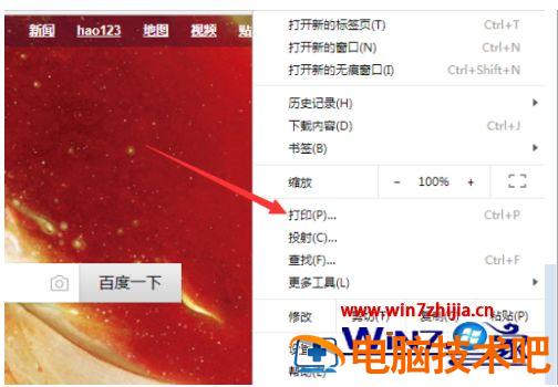 2、进行点击了设置按钮之后,弹出了下拉菜单选中为 打印 的选项。