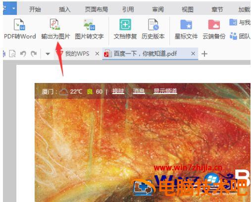 5、pdf的文件被打开之后,进行点击工具中的 输出为图片的选项。