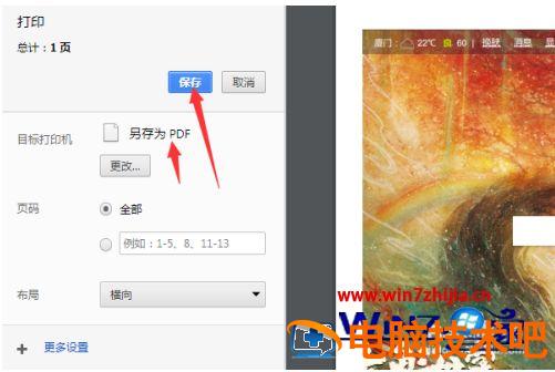 3、然后就会弹出了一个为打印窗口,进行点击 保存 pdf文件。