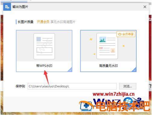 6、弹出了一个输出为图片的窗口,因没有会员只能选中为 带wps水印,进行点击确定 即可。