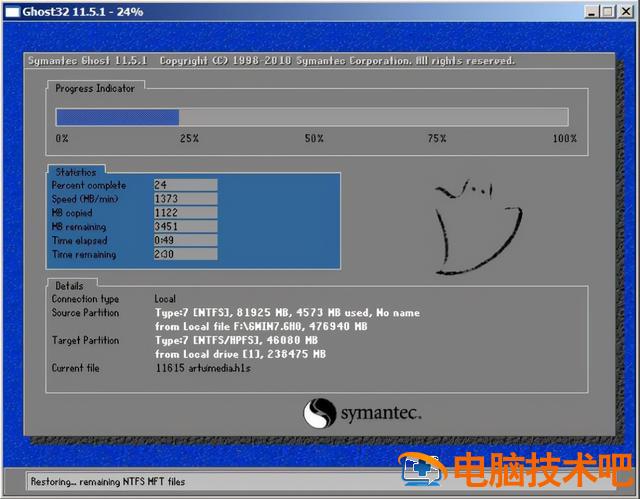 4.等待系统恢复,然后重启系统,如图:
