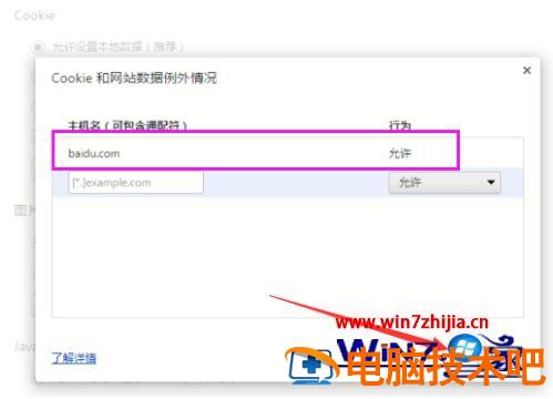 5、点击添加排除例外,如图输入 主机名域名部分,选【允许】。