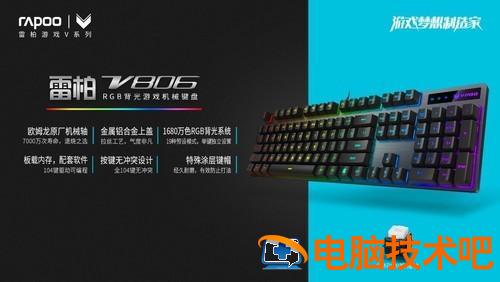 雷柏是国内外设计的领先品牌V806幻彩RGB背光游戏机械键盘由欧姆龙原厂机械轴支撑,寿命7000万次,寿命1000万次.5mm极速触发,大大提高了性能和手感;1680万色幻RGB灯光系统,19种流行的照明模式供您玩;全键可编程,全键无冲突,金属铝合金盖,特殊涂层盖,大面积防滑垫,镀金USB接口、编织线材、防静电磁环、魔术贴绑等功能,满足游戏玩家的苛刻需求。目前配备欧姆龙原轴的雷柏V806只卖399,无疑是玩家最值得入手的游戏利器,帮你在战场上打胜一击!目前配备欧姆龙原轴的雷柏V806只卖399,无疑是玩家最值得入手的游戏利器,帮你在战场上打胜一击!