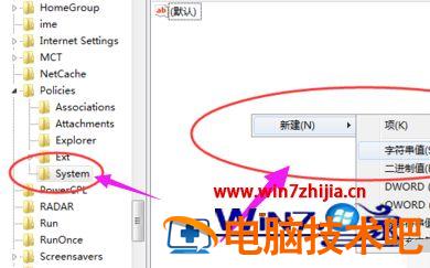 4、右键【Policies】选项,选择【新建】,再选择【项】,并将其命名为【System】。