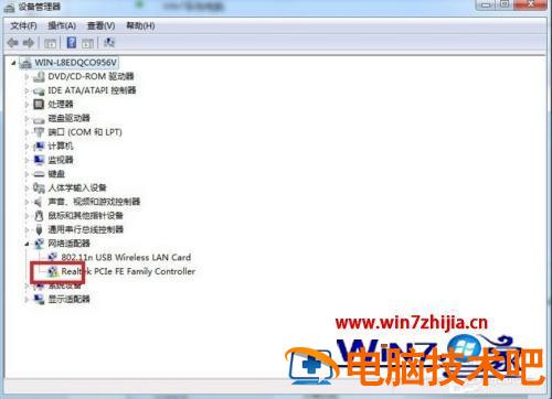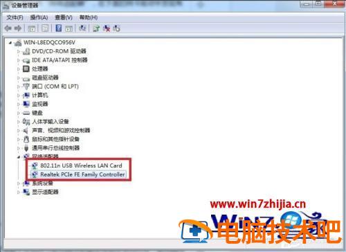 3、现在在设备管理器下面找到“网络适配器”,在下面的网卡驱动中发现有感叹号和问号。