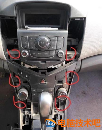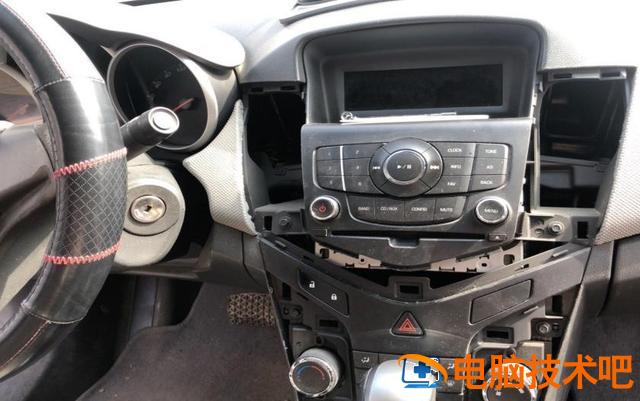 拆下中控台面板后,轻轻撬下液晶屏露出CD机全貌。再拆CD四个螺钉固定在机器上。