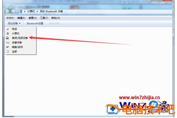 五、插入蓝牙配适器,打开我的电脑,在我的左上角点击【添加设备】。在弹出的窗口中,点击添加【设备-音频/视频设备】。