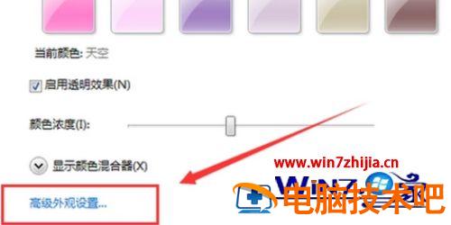 3、进入“窗口颜色”界面后,在窗口下方选择“高级外观设置”点击进入;