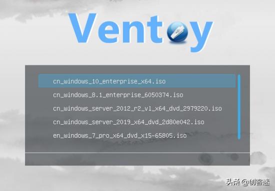 启动盘首先需要下载系统镜像文件,使用的软件是Ventoy,Ventoy支持传统的开源软件BIOS和最新的UEFI固件,它将U盘分为两个区域,隐藏分区为启动分区,另一个分区用于存储系统镜像。支持微软独特的镜像文件WIM镜像和传统ISO镜像。