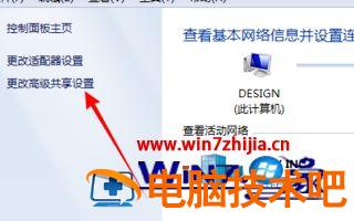 2、点击左边的【更改高级共享设置】链接。