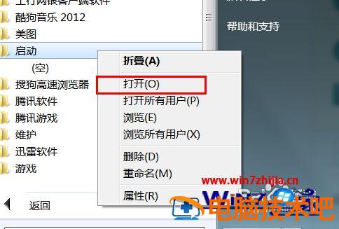 2、找到启动文件夹后,大家要注意啦。在Windows XP系统里面,此处的文件夹需要双击才能打开。但是在Windows 7系统里面,我们只能击右键,选择打开即可。