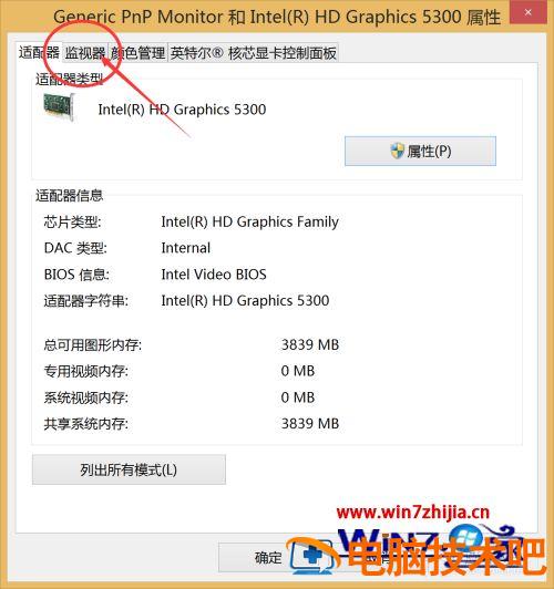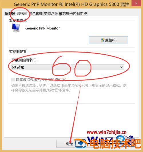 8、然后打开监视器看下面的显示器的刷新频率是不是60赫兹,若不是调成60就而已了。
