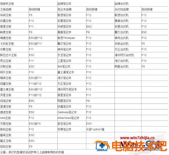 上面将win7如何进去bios设置的办法告诉了用户,小编在下方就把那张图标给放上去,让用户可以找到自己电脑对应进入bios的按键。