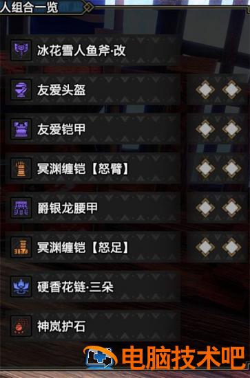 第一套的属性瓶盾斧,差别只有武器换一下和属强珠换一下,我把他称之为勇者王流派,打的时候血量和被人扎了大动脉一样,要快点打部位破坏然后进吸。