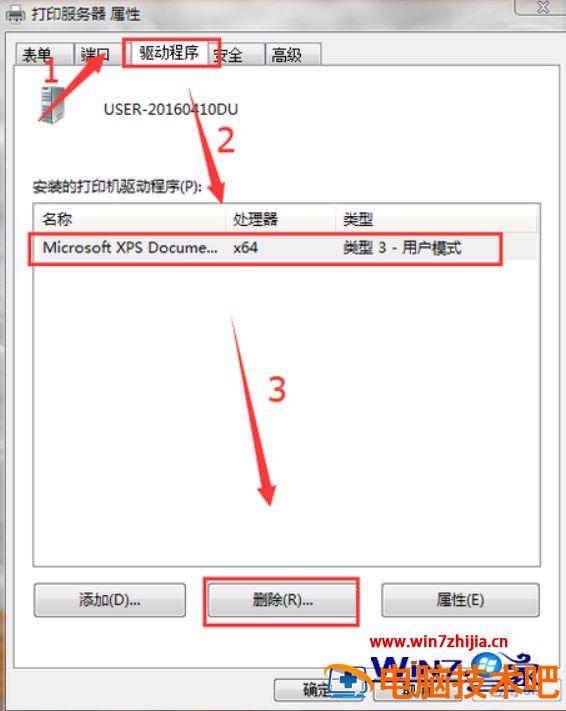 9、进入后,找到“驱动程序”,“驱动程序”—>找到正在打印的打印机—>“删除”。删除完后再重新安装此网络打印机。