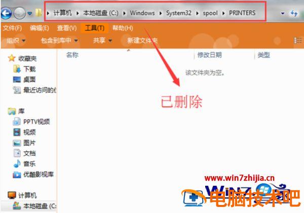 3、再打开C:\WINDOWS\system32\spool\PRINTERS目录下的文件内容,删除文件内容。