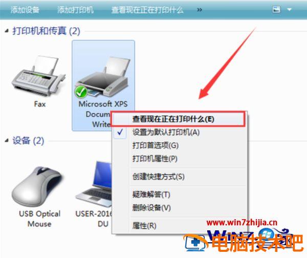 2、找到打印的打印机,点击右键点击“查看正在打印什么”,查看网络连接是否顺畅,要确保好网络打印,ping打印的地址网络是连通的。