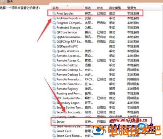 6、重启“Print Spooler”、“Server”、“Workstation”等服务。
