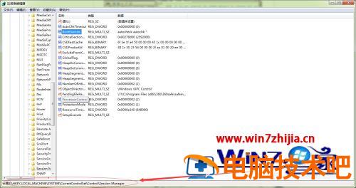 2、在注册表里,按照这个路径HKEY_LOCAL_MACHINE\SYSTEM\CurrentControlSet\Control\Session Manager定位,然后在右侧窗口找到BootExecute这一项,双击。