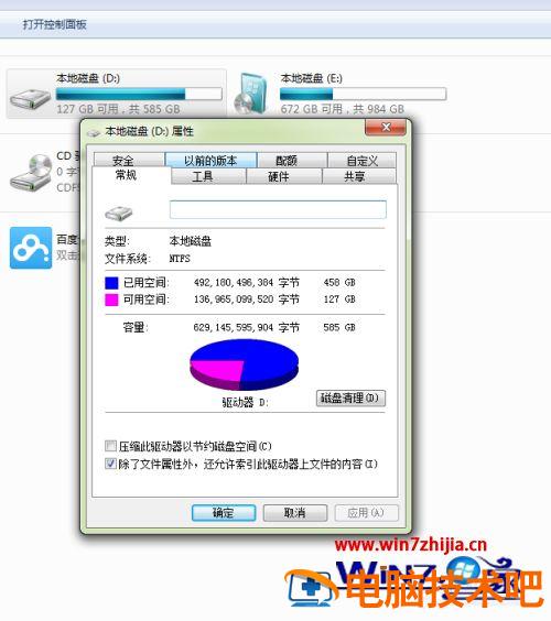 2、进入我的电脑打开D盘属性窗口后,在“工具”界面里,在“磁盘整理”找到“开始整理”按钮。