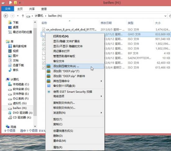 1.选择要压缩的gho右键选择文件添加到压缩文件