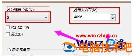 第四步,根据自己CPU核心数量与真实内容容量上做正确的配置,由于小编是双核的CPU,4G的内存,这个以自己电脑的情况而定。
