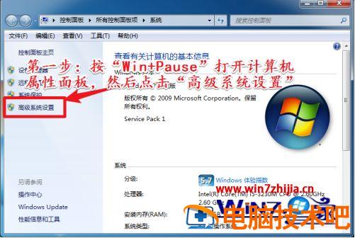 方法三:1、电脑用户按“Win+Pause”打开计算机属性面板,然后点击“高级系统设置”选项。