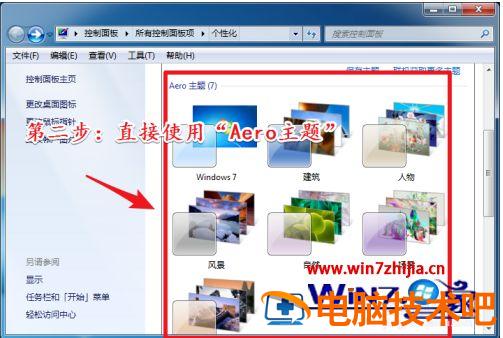 2、进入系统的“个性化”设置界面以后。使用界面上的惹任意Aero主题也可以开启。