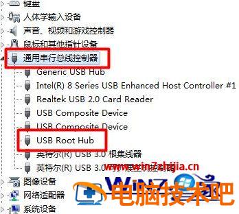 3、选择通用串行总线控制器。找到“UsB Root Hub”。