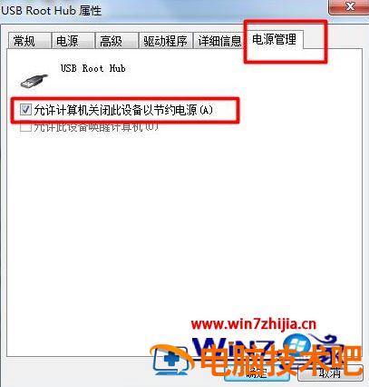 5、选择电源管理,将“允许计算机关闭这个设备以节约电源”前的勾去掉。并点击确定返回,然后重新启动电脑即。
