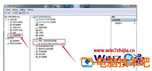3、再依次选择“设备管理器”,在右边菜单中找到“声音、音频和游戏控制器”选项,确认声卡驱动没有问题。