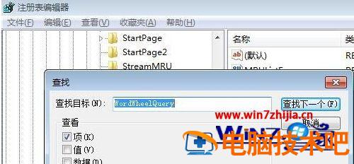 11、如果记不住这个HKEY_CURRENT_USER\Software\Microsoft\Windows\CurrentVersion\Explorer\WordWheelQuery路径,可以记住要给注册表项名称,搜索就可以了。