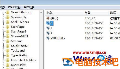 7、我们手动删除0这个注册表项,看看是不是资源管理中Windows搜索记录也删除了图片1关键字;