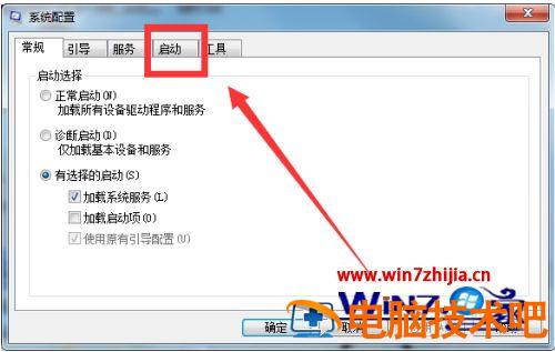 3、当我们在里面输入–msconfig–指令点击–确定-以后,然后我们来到了-系统配置的对话框,然后我们点击–启动–页签,如下图所示。