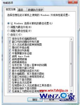 4、通常系统默认选的是第一项,也就是“让windows选择计算机的最佳设置”,我们可以改成最佳性能选项,这样会大大减少内存占用,从而使电脑提速。