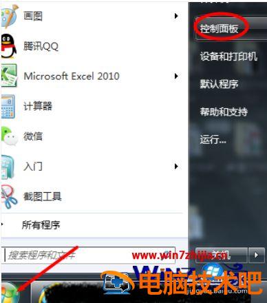 5、点击开始菜单,点击控制面板。