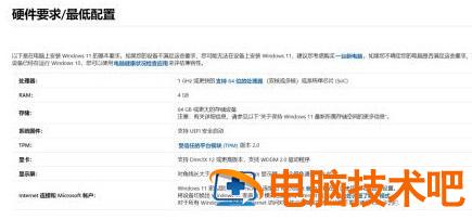 2、看到win11系统最低的处理器需求为:1GHZ或者更快且支持64位的处理器,满足了最低的配置需求就可以进行升级