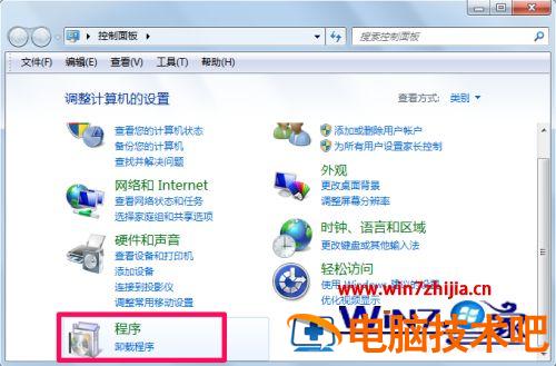2、在控制面板中点击卸载程序,如果你右上角的查看方式是类别,图片就是卸载程序的位置。