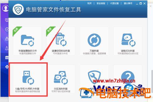 5、安装后,打开文件恢复工具,点击“U盘恢复”。