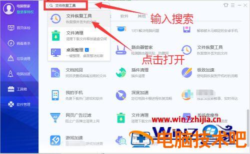 4、在工具箱的搜索框中输入“文件恢复工具”,搜索找到文件恢复工具,点击它。