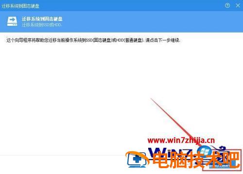 4、点击“迁移系统到固态硬盘”后,然后继续点击下一步。