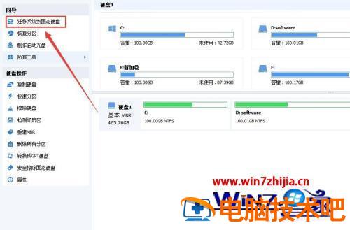 3、打开之后,我们会在左侧位置看到“迁移系统到固态硬盘”。