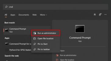 1、点击Windows键,输入cmd,右键单击第一个结果,选择Run as administrator