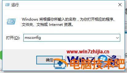 1、打开“运行”窗口,输入“msconfig”命令进入系统配置策略界面;