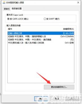 6、在弹出的“文本和输入语言”界面再点击“高级键设置”。