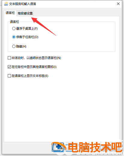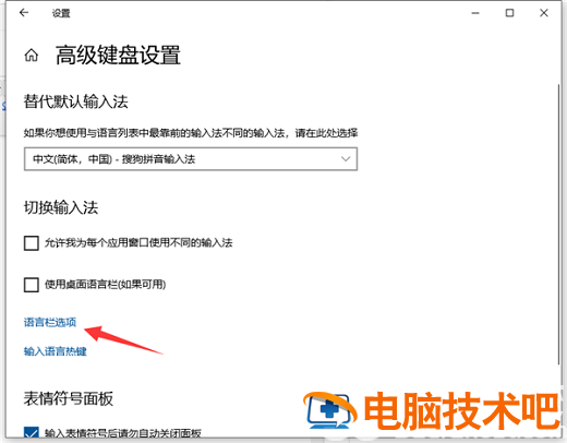 5、进入“高级键盘设置”后再点击“语言栏选项”。