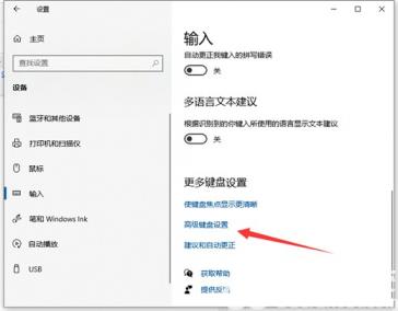 4、在“输入”界面再点击“高级键盘设置”。
