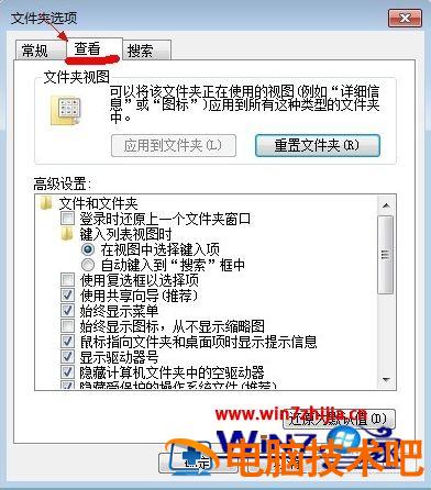 3、在弹出的窗口里点击切换到“查看”选项卡。