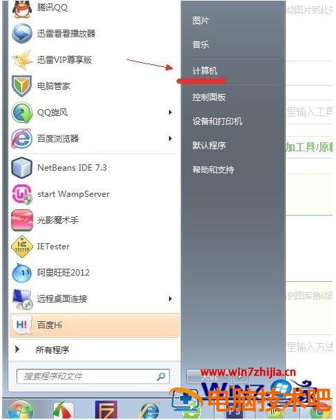 1、点左下角“开始”菜单,再点击“计算机”。